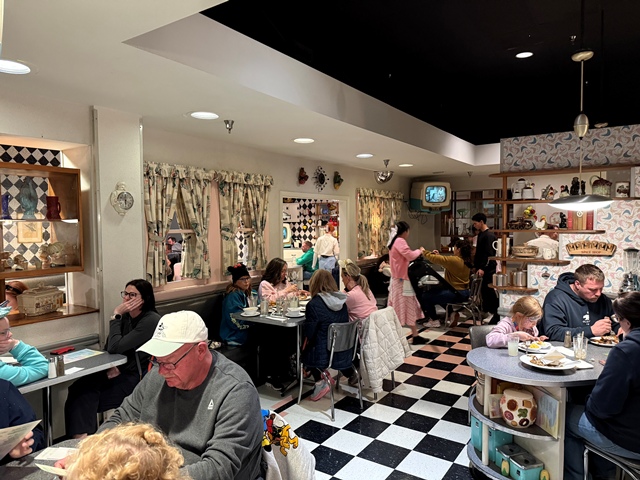 at Hollywood Studios Open for Lunch and Dinner American Cuisine Priority Seating Recommended Moderately Priced Table Service Mom's Home Cooking featuring sandwiches, salads, meatloaf, tuna melts, s'mores, and shakes. The waiters and waitresses will mess with you, so be prepared for a fun time! |