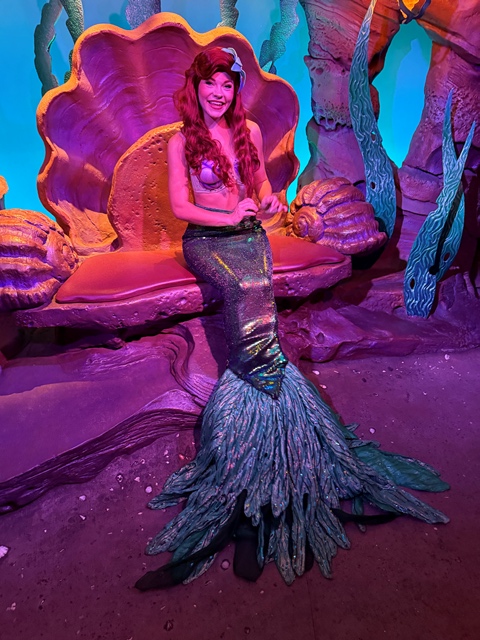 Meet the Little Mermaid in her retreat under the sea. This attraction is like many other meet-and-greets for Disney characters: It consists of a basic queue and then time with the popular Disney Princess. Although there are no interactive elements to keep guests entertained, it is, of course, well-themed so you feel like you might be in a craggy cave during your wait. Most of the queue is under cover, so guests will get a break from the Florida sun. |