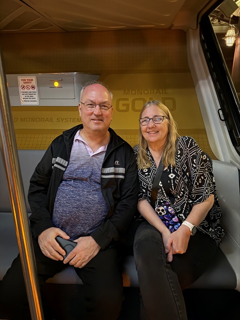 On the monorail, you can sit or stand.