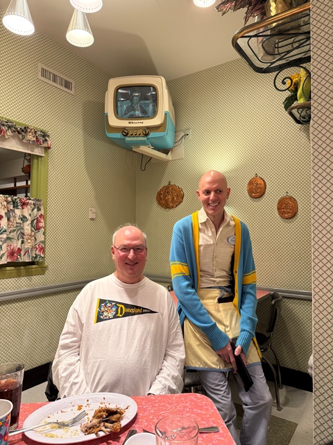 at Hollywood Studios Open for Lunch and Dinner American Cuisine Priority Seating Recommended Moderately Priced Table Service Mom's Home Cooking featuring sandwiches, salads, meatloaf, tuna melts, s'mores, and shakes. The waiters and waitresses will mess with you, so be prepared for a fun time! |