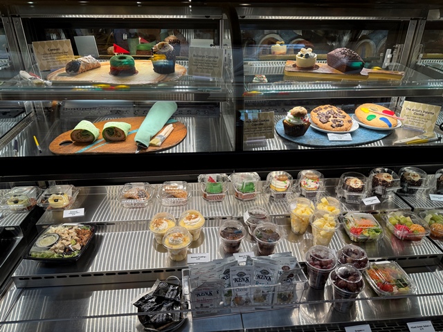 Features sandwiches, salads, and desserts.