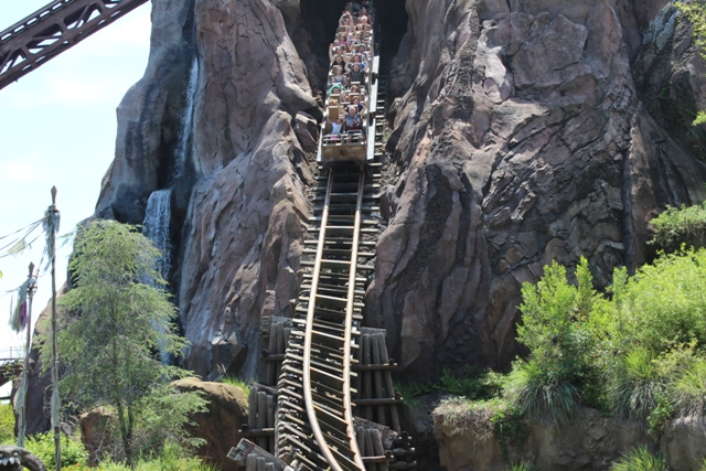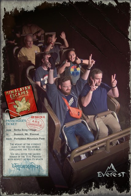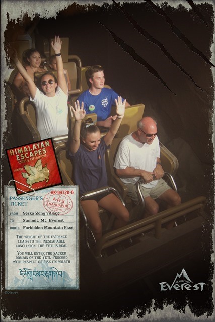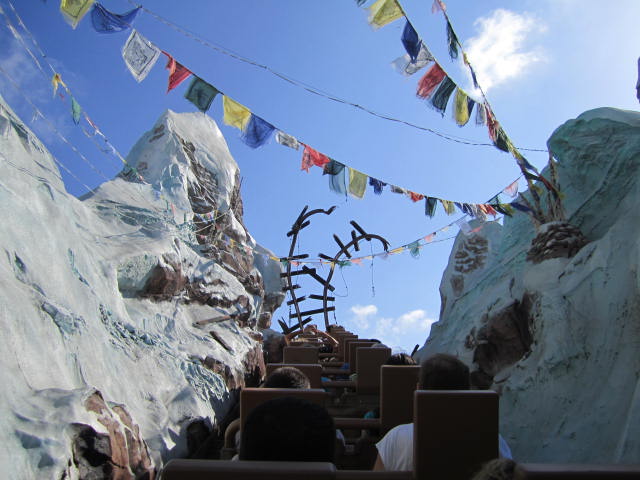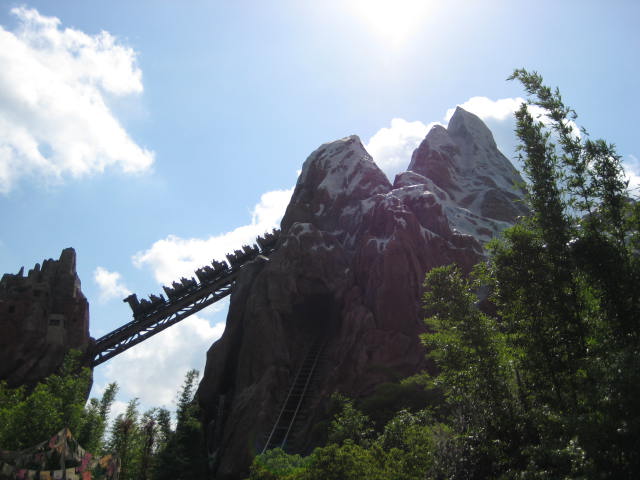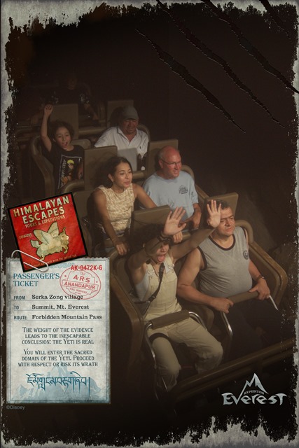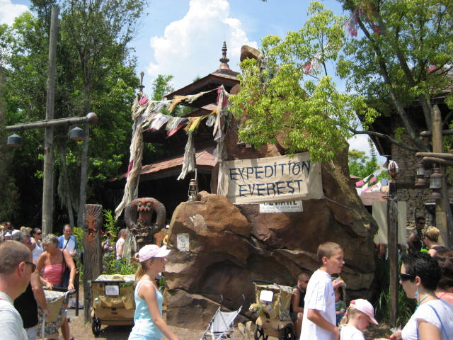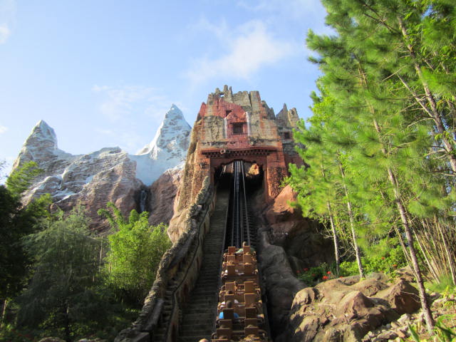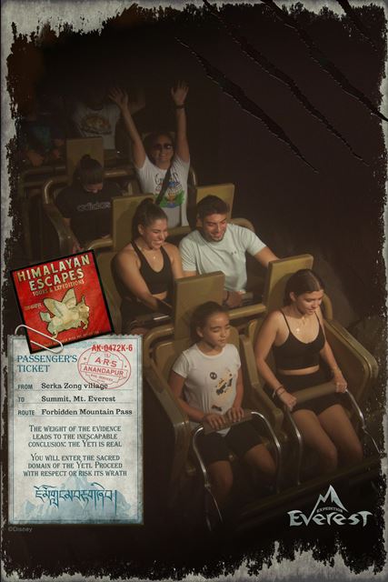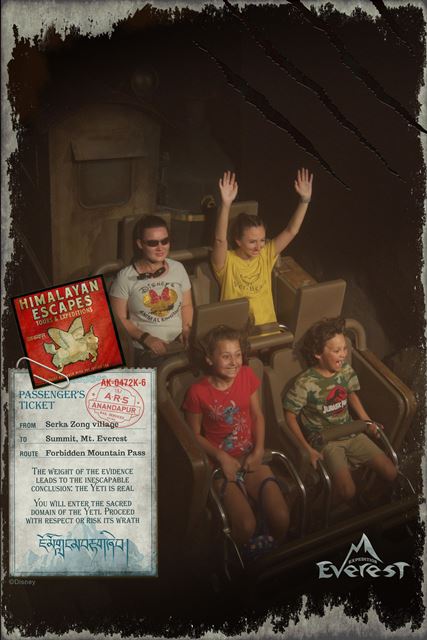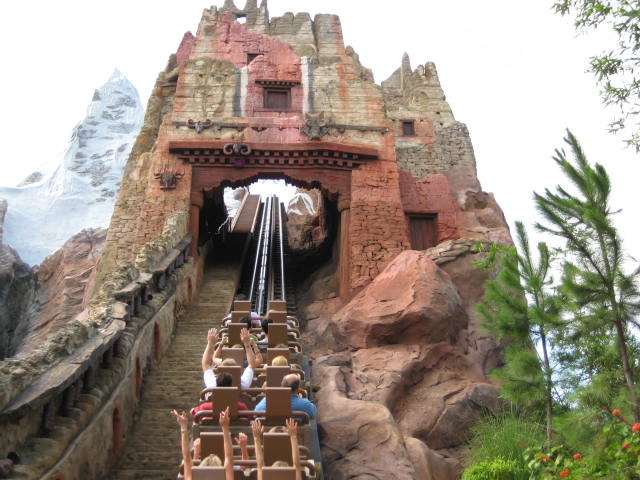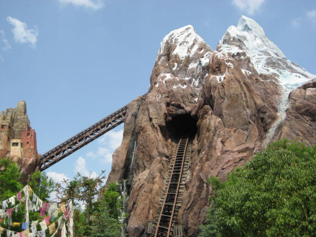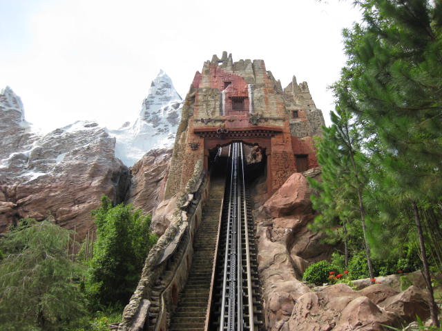 Expedition Everest - Legend of the Forbidden Mountain While traveling the base of Mount Everest on an old railway, your train unexpectedly reaches the end of the track. This roller coaster, that travels both backwards and forwards, concludes after guests face the abominable snowman. Legend holds that high in the Himalayan Mountains lives an enormous creature that fiercely guards the route to Mount Everest. Now that legend will come dramatically to life at Disney’s Animal Kingdom in a new high-speed train adventure that combines coaster-like thrills with the excitement of a close encounter of the hairy kind. Walt Disney World guests will discover for themselves the fearsome legend of the yeti when they ride Expedition EVEREST at Disney’s Animal Kingdom theme park. |