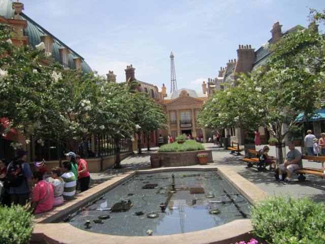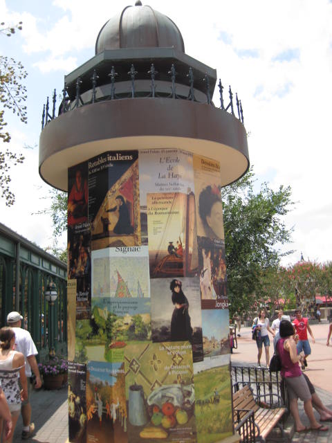| France As visitors walk over the Pont des Arts inspired footbridge that crosses the World Showcase lagoon canal offshoot, they will feel as though they have crossed the Seine River into France. As on the banks of the Seine, artists here sketch along the waterfront. This charming pavilion includes detailed street scenes with a definite Gallic flavor. A romantic sidewalk café, warm delicious smells emanate from the bakery, quaint shops with mansard roofs of slate or copper, casement windows and chimney stacks reminiscent of the charm filled "city of lights" are sure to enchant and delight all who pass through here. The "piece de resistance" is a scaled down reproduction of Paris' most famous landmark, the Eiffel Tower, as it looms behind this engaging architecture. The architecture of the last decades of the 19th century inspired the main entrance to the pavilion. The passageway between "La Signature" and "Plume et Palette" shops is modeled after the Art Nouveau-style of the Metro's (Parisian subway system) entrance. This passageway, or arcade, leads to a charming little park modeled after a painting by Georges Seurat, "A Sunday Afternoon on the Island of La Grande Jutte." More of the beauty of France and its people are showcased in the "Impressions de France" film shown in the Palais du Cinema. While not a 360º Circle-Vision presentation like those in Canada and China, this film is shown on 5 large screens that are a 200º view and there are seats in this theatre. The film shows the diverse geography of France in its vineyards, the French Alps, a glacier and the spectacular Mediterranean coastline of Cannes. The rich culture is evident in Bastille Day celebrations, the beautiful native costumes, famous landmarks like the Eiffel Tower, the Versailles and the Chambord Chateau (which incidentally provided some of the inspiration for the Cinderella castle). An extraordinary compilation of French composers provides the soundtrack for this enchanting presentation. This 18 minute travel film will be appreciated more by adults than by small children. Be sure to keep an eye on the "Living Statues", these talented individuals are full of surprises. Check the park guide maps for appearance times. Chefs de France - Not only is the French cuisine amongst the best in the world, it is amongst the best in Walt Disney World! The "Chefs de France" serves nouvelle cuisine created by three of France's premier chefs. In this elegant dining room, you can begin your dining experience with a bowl of classic French Onion Soup or escargots. Some of the delicious entrees include grilled salmon, Mediterranean seafood casserole, pot au feu, Duck a l'Orange, Cassoulet and other lamb, beef and chicken dishes. At the Boulangerie Patisserie, visitors will find cookies, croissants, eclairs, mousse, palmier ("Elephant ear" pastry), quiche, cheesecake, souffle, tarts and sandwiches accompanied by French roast coffee. You may choose to sit at an outdoor table to soak in the ambience. There is an abundance of shops, and merchandise, to choose from in the pavilion of France. Art enthusiasts will find fine oil paintings and prints of all kinds, collectible miniatures and crystal pieces in the "Plume et Palette". "La Signature" is a parfumerie with fine French fragrances and bath products. Chocolates, cookies and souvenirs are found in the "Gallerie des Halles". Sophisticated casual clothing for both men and women is sold at "La mode Francaise". At "La Maison du Vin", guests can sample different wines (for a fee) and purchase their favorite French wines. All areas of the France pavilion are wheelchair accessible. FUN FACTS: Say “hello” in French by saying “bonjour” (bohn-ZHOOR). HIDDEN MICKEYS: Check out the grates at the base of the trees. |