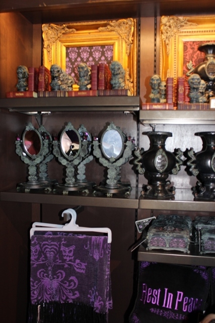Lots of Haunted Mansion merchandise, both new and old, fill this store.