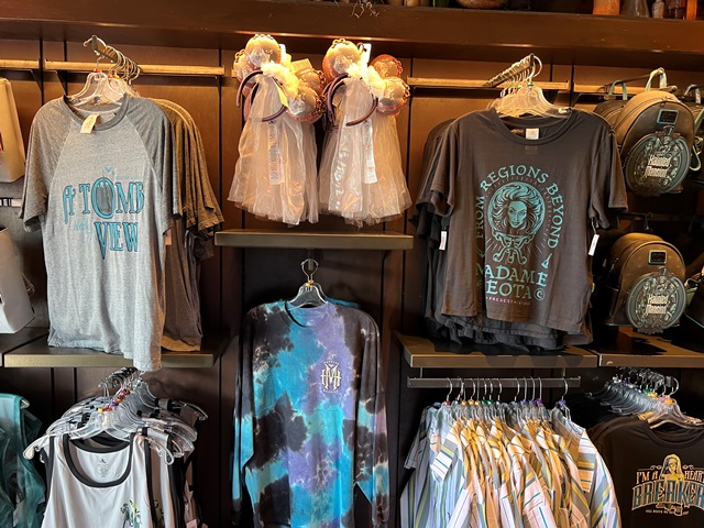 Memento Mori, a new merchandise location dedicated to The Haunted Mansion is located near the exit. Memento Mori is the destination for plenty of Haunted Mansion Authentic merchandise created for Disney Parks.