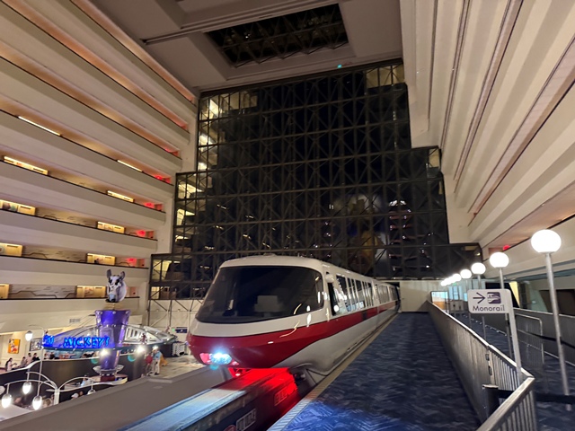 Here is the yellow monorail going through Contemporary.