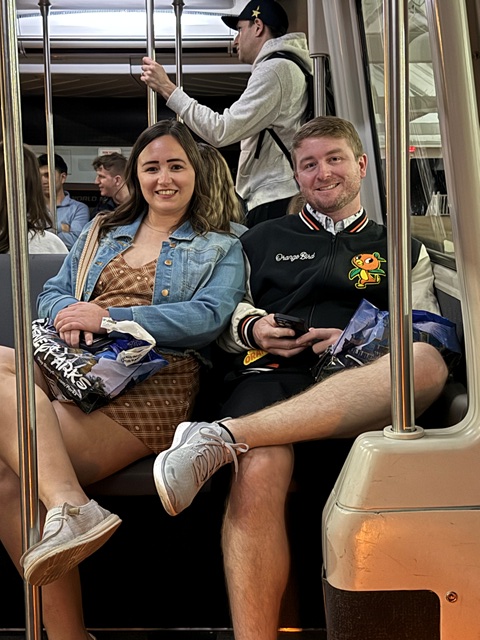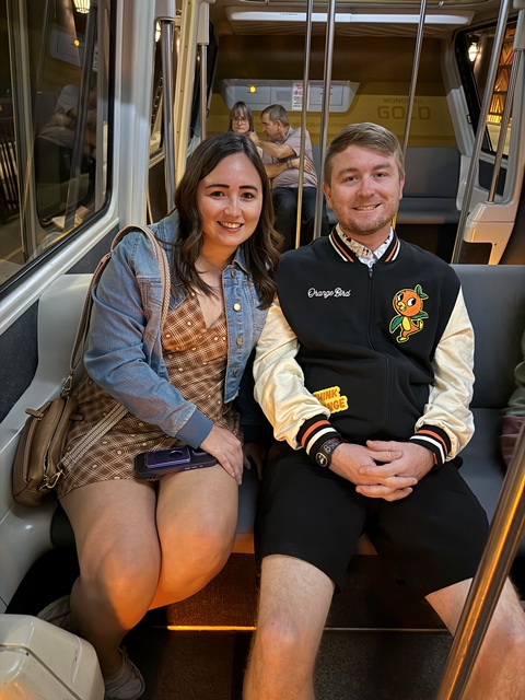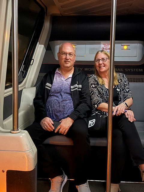 On the monorail, you can sit or stand.