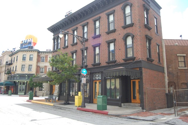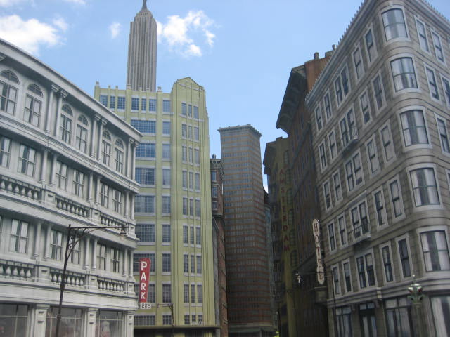 | Streets of America At the end of Commissary Lane, turn right onto the Streets of America, which create the illusion of New York City, San Francisco and other cities using forced perspective techniques. The buildings are all facades, but you'll spot a London street, and even a street right out of Chinatown. Listen closely, you'll often hear the sounds effects of a busy city in the background, too. |