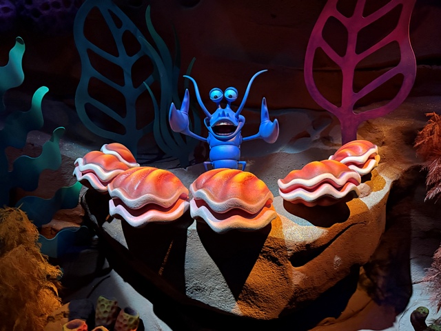 While the ride itself is great, the queue at the Walt Disney World version of this ride is worth the visit alone. With stunning rockwork and waterfalls, the line immerses you into the world of the Little Mermaid. Once inside, guests can play an interactive game featuring crabs sorting out Ariel's thingamabobs, whosits, and whatsits galore. Just point out the items that don't belong and the crabs will take them away. |
