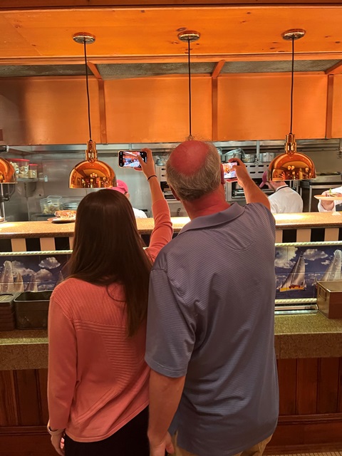 Table Service The gleaming brass, polished woodwork and burgundy leather set the New England nautical tone for this relaxed and sophisticated restaurant. This is definitely a top deck experience! |